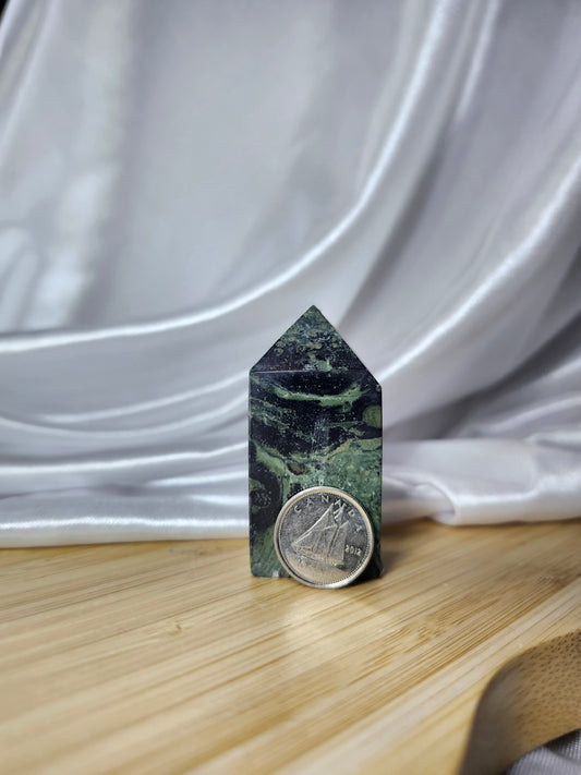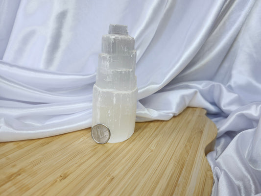 Crystal towers are elongated, pointed pieces of crystals that are cut and polished into a tower or obelisk shape. These structures are designed to direct and amplify energy through their apex, making them popular in meditation, healing practices, and as focal points in home décor. The form of a tower is believed to enhance the crystal's natural properties by channeling energy in a focused manner. Crystals are naturally and beautifully unique. Therefore, the photo(s) shown is an example(s). By purchasing 1 quantity of this item, you will receive 1 of the pictured product(s). Product size, appearance, and color may vary from the examples shown.