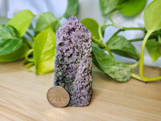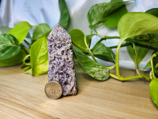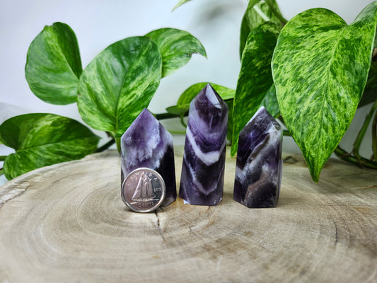Crystal towers are elongated, pointed pieces of crystals that are cut and polished into a tower or obelisk shape. These structures are designed to direct and amplify energy through their apex, making them popular in meditation, healing practices, and as focal points in home décor. The form of a tower is believed to enhance the crystal's natural properties by channeling energy in a focused manner. Crystals are naturally and beautifully unique. Therefore, the photo(s) shown is an example(s). By purchasing 1 quantity of this item, you will receive 1 of the pictured product(s). Product size, appearance, and color may vary from the examples shown.