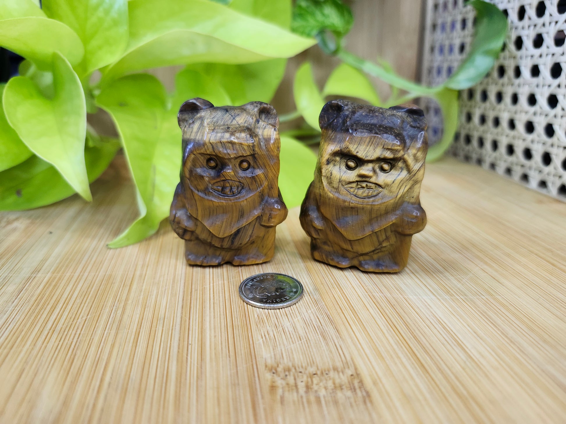 Bring the power of the Force and the strength of tiger's eye into your space with the Tiger's Eye Ewok. Carved from the grounding and protective stone, this charming Ewok figure brings courage, focus, and stability to your décor, meditation practice, or as a thoughtful gift for Star Wars fans and crystal lovers.