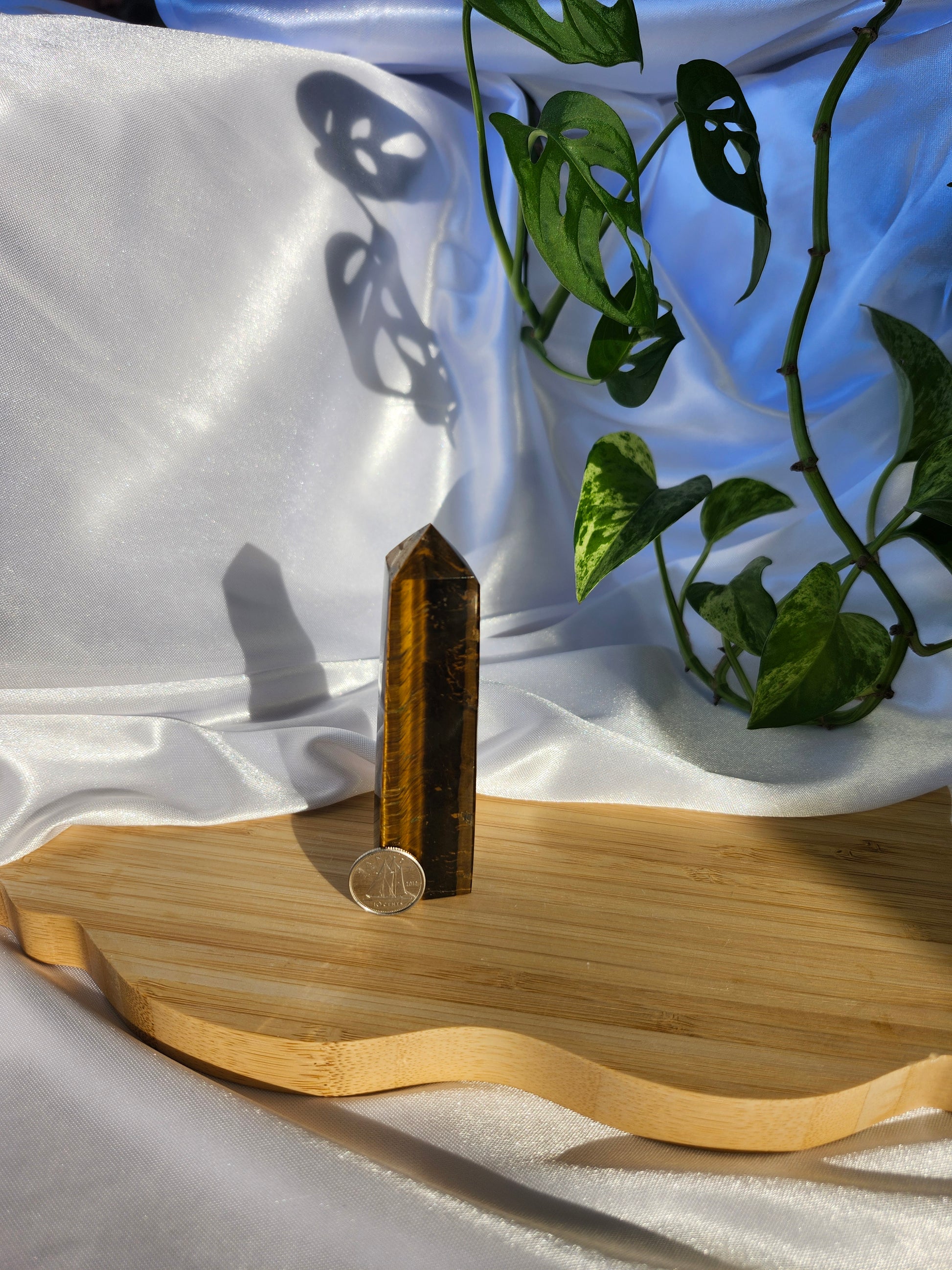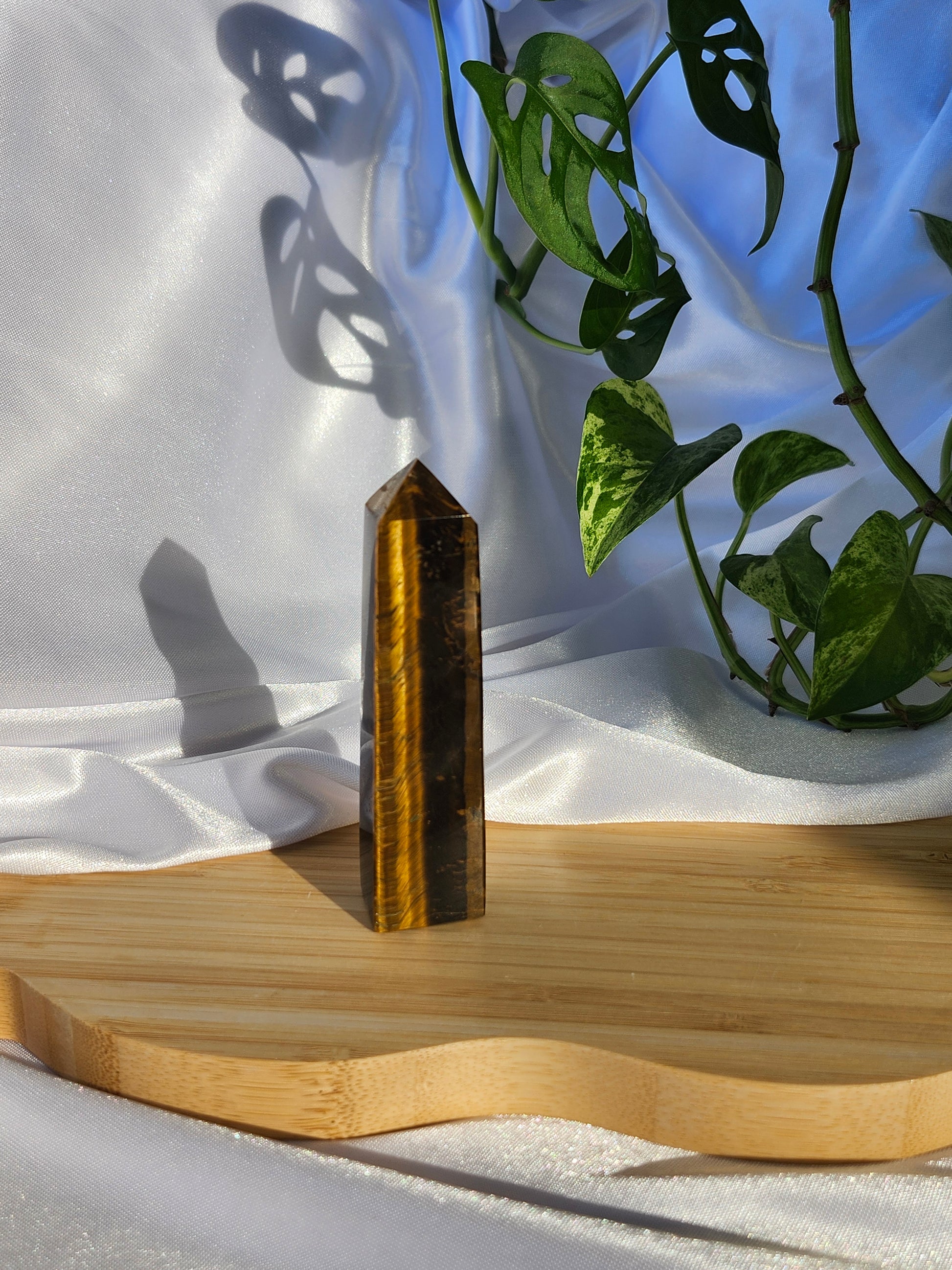 Channel courage and focus with the Tiger's Eye Tower, a powerful crystal known for its grounding energy and protective properties. Revered as a stone of confidence and motivation, Tiger's Eye is believed to enhance clarity, willpower, and emotional balance.