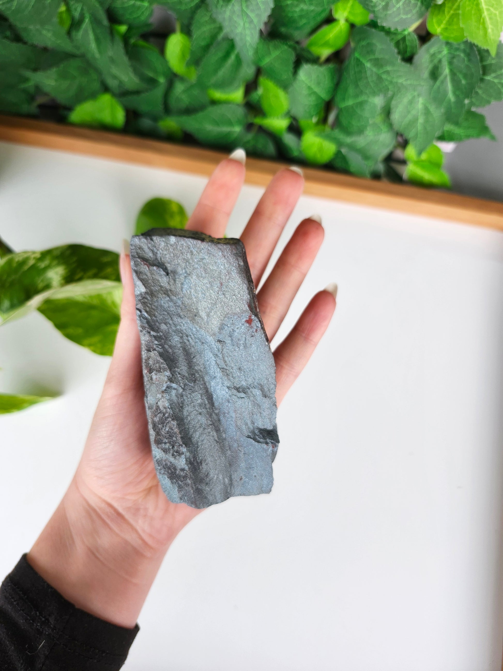Hematite is a heavy, shiny mineral that ranges from metallic gray to black, often with a silver, metallic luster when polished. It's an iron oxide and is the most important ore of iron, renowned for its high iron content and density. Hematite specimens are often used in jewelry, especially as beads and cabochons, and are valued for their grounding and protective properties in metaphysical practices.